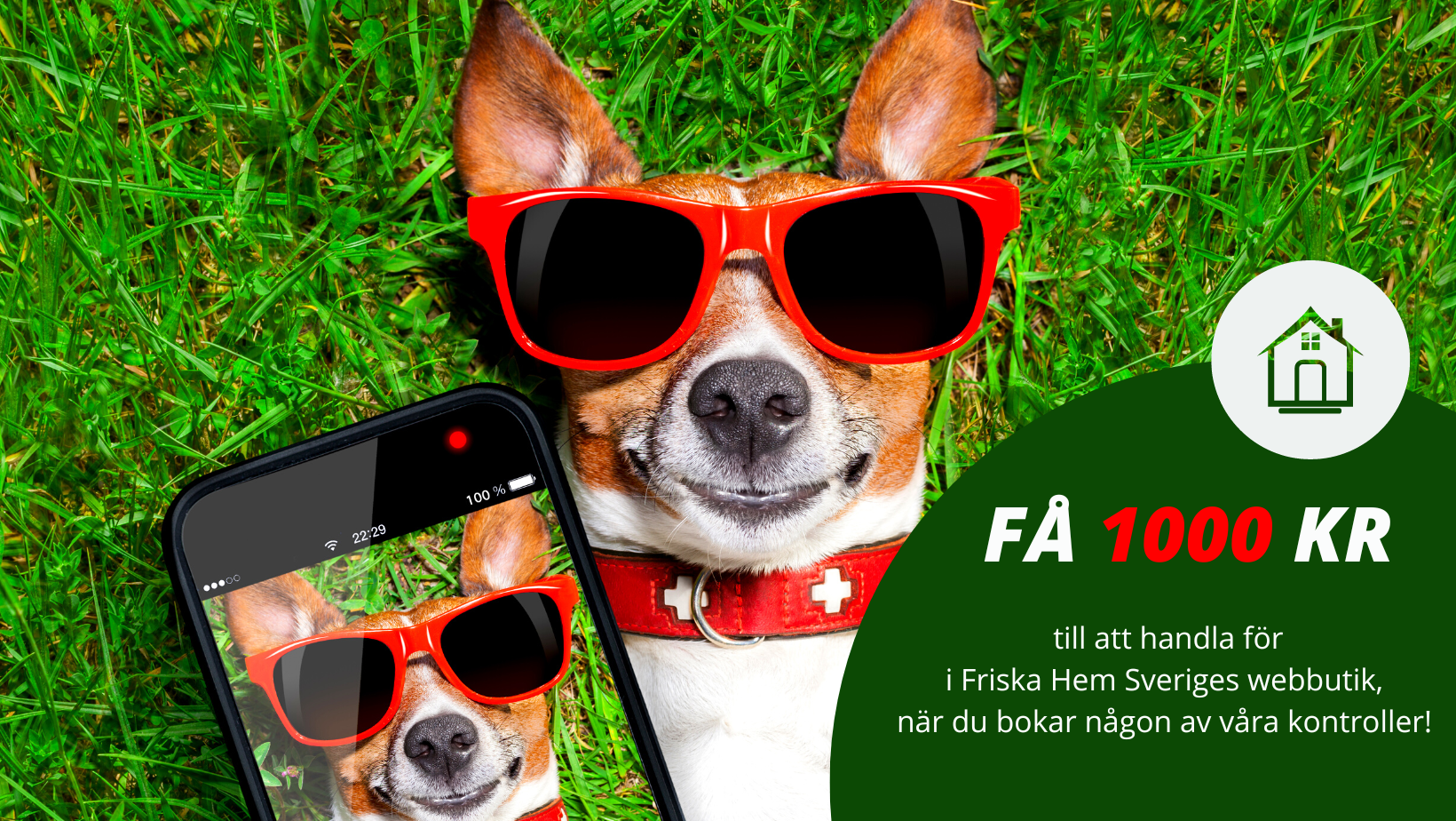 Nu får du som kund 1000 kr att handla för på vår hemsida, när du bokar en av våra kontroller i er bostad. Erbjudandet sträcker sig november ut. Tänk på att vi även har fri frakt när ni handlar för 1499 och uppåt.